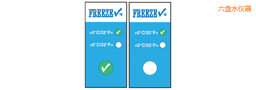 TempDot FreezeCheck標(biāo)簽,型號54000,,用來表示溫度低于0°C。如果溫度低于0°C,標(biāo)簽不可逆轉(zhuǎn)地發(fā)生變化,變成白色,勾形標(biāo)記消失。 冷凍檢查標(biāo)簽用來指示溫度低于0°C. 當(dāng)溫度下降到低于臨界點, 指示劑不可逆轉(zhuǎn)的改變從清晰到白色并且綠色合格標(biāo)志不再顯示。